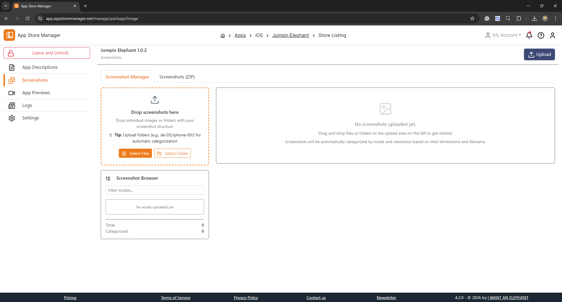 <figure><img src="https://3157999510-files.gitbook.io/~/files/v0/b/gitbook-x-prod.appspot.com/o/spaces%2FC766X4IlgRAg3uNFiRyW%2Fuploads%2Fgit-blob-4d4e108ec77af7c6853313bcc0ed30398eecedea%2Fapp-store-manager-screenshot-upload-main.png?alt=media" alt=""><figcaption><p>App Store Manager - Screenshot Upload</p></figcaption></figure>