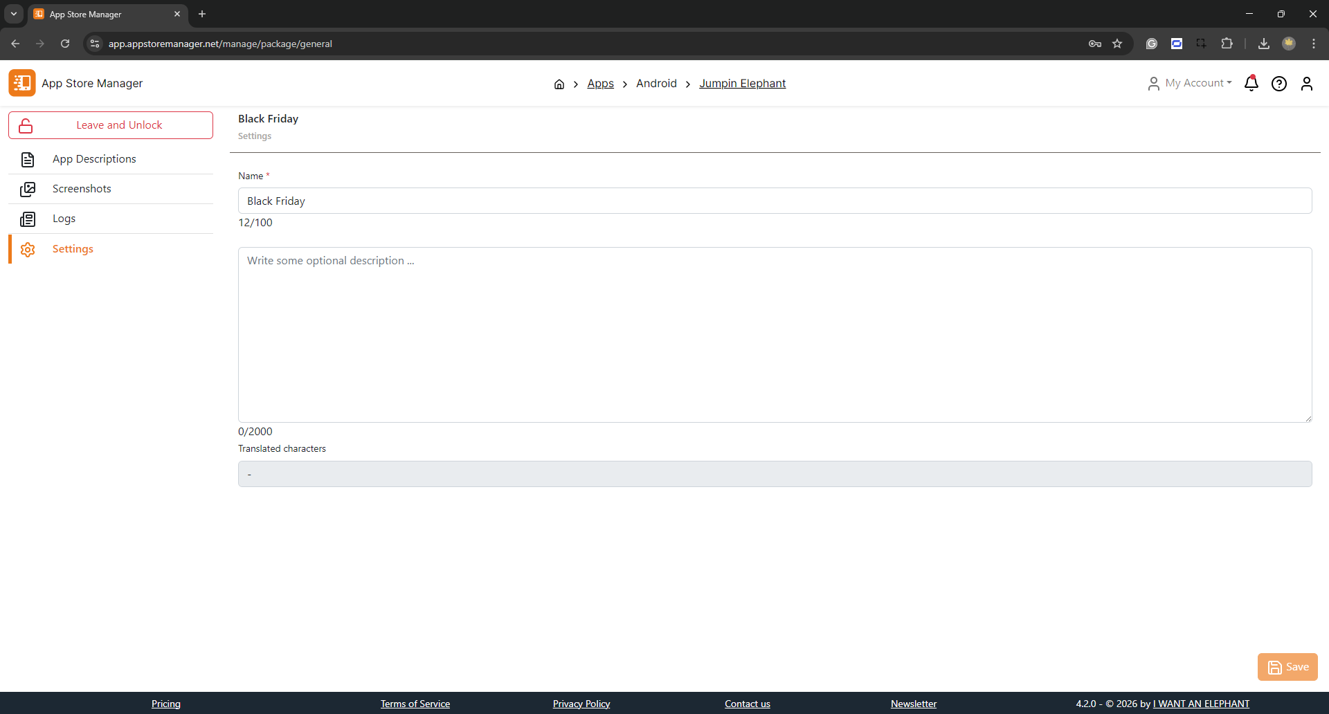 After the export is done, switch to the App Store Manager. Create an app and a description package there.